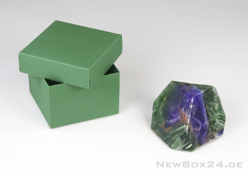 Als Geschenkverpackung für diese Designseife im Edelstein-Look wurde eine Stülpdeckelbox aus Karton in der passenden Farbe gewählt.