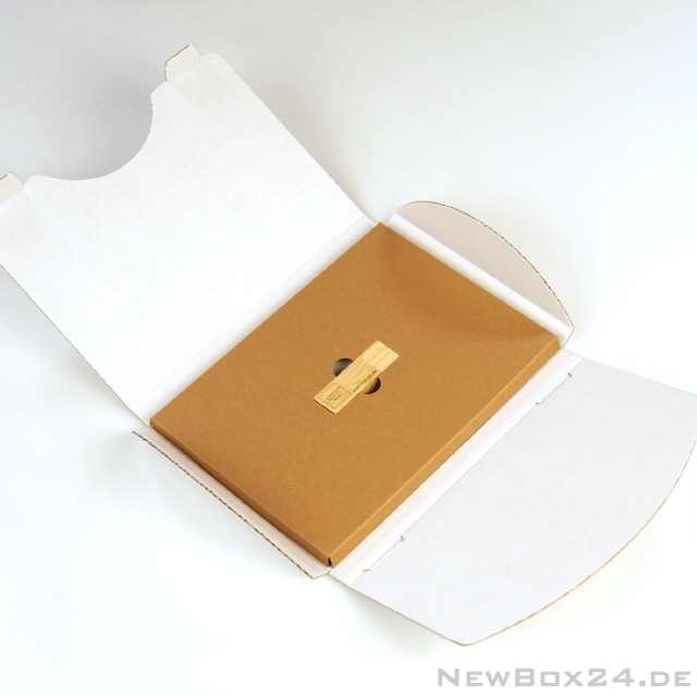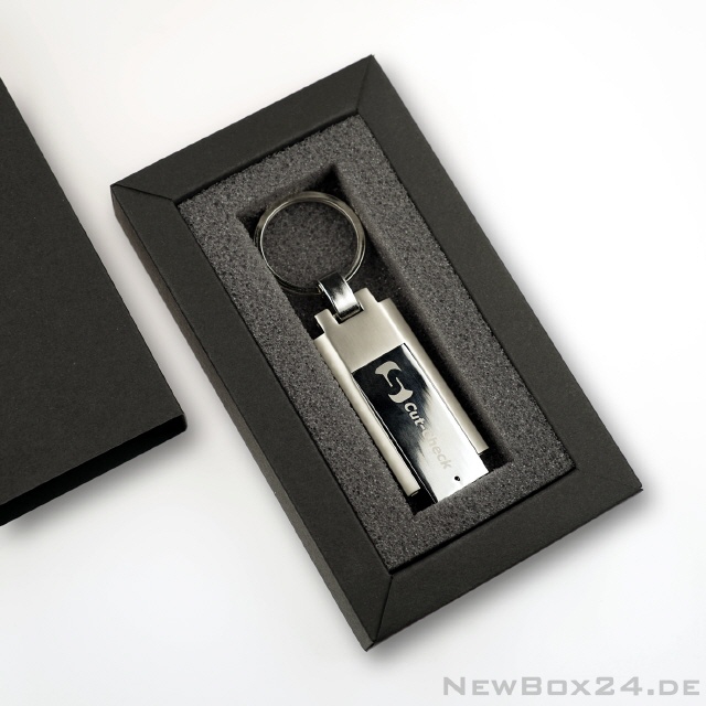 Für einen USB-Stick, der bereits in einer Metallbox verpackt ist, wurde für eine Messe ein ansprechende Umverpackung zum Überreichen als Kundengeschenk gesucht - und bei NewBox24.de gefunden.