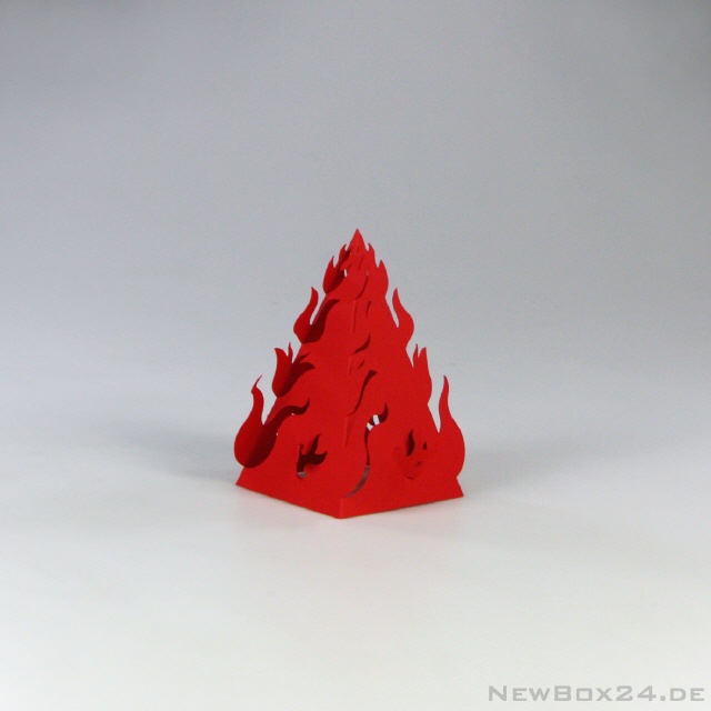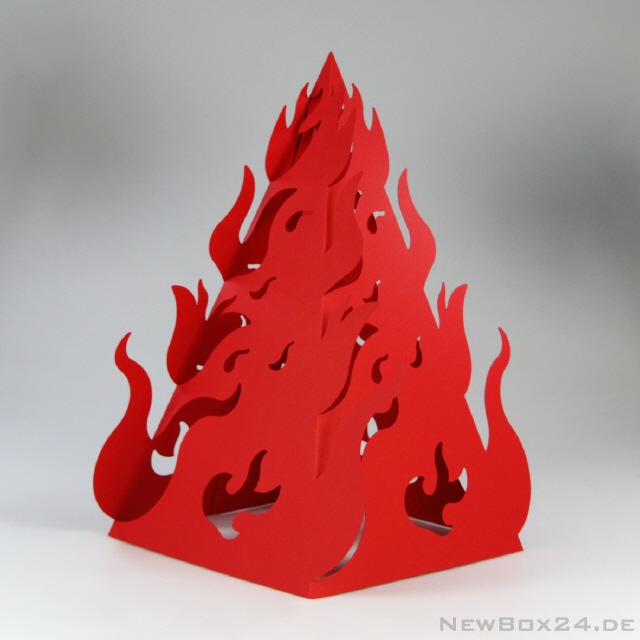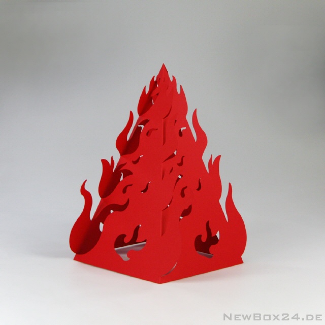 Feuer und Flamme als dekoratives Design-Element. Erhältlich in allen Kartonfarben, wie z. B. rot, gelb oder orange. Aber auch modische Farben sind selbstverständlich möglich. Die Deko-Feuer können sehr schön mit LED-Leuchtmitteln illuminiert werden.