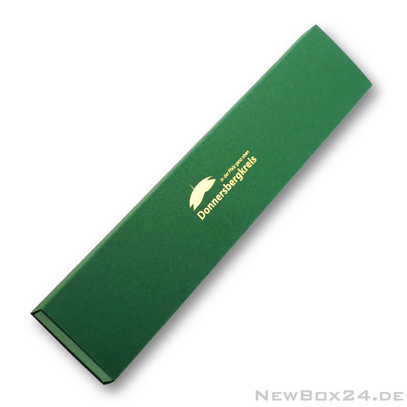 Goldprägung auf einer Stülpdeckelbox aus Karton in grün.