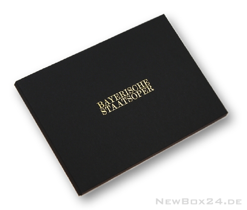 Gold-Prägung auf einer schwarzen Klappdeckelbox der Serie 216.