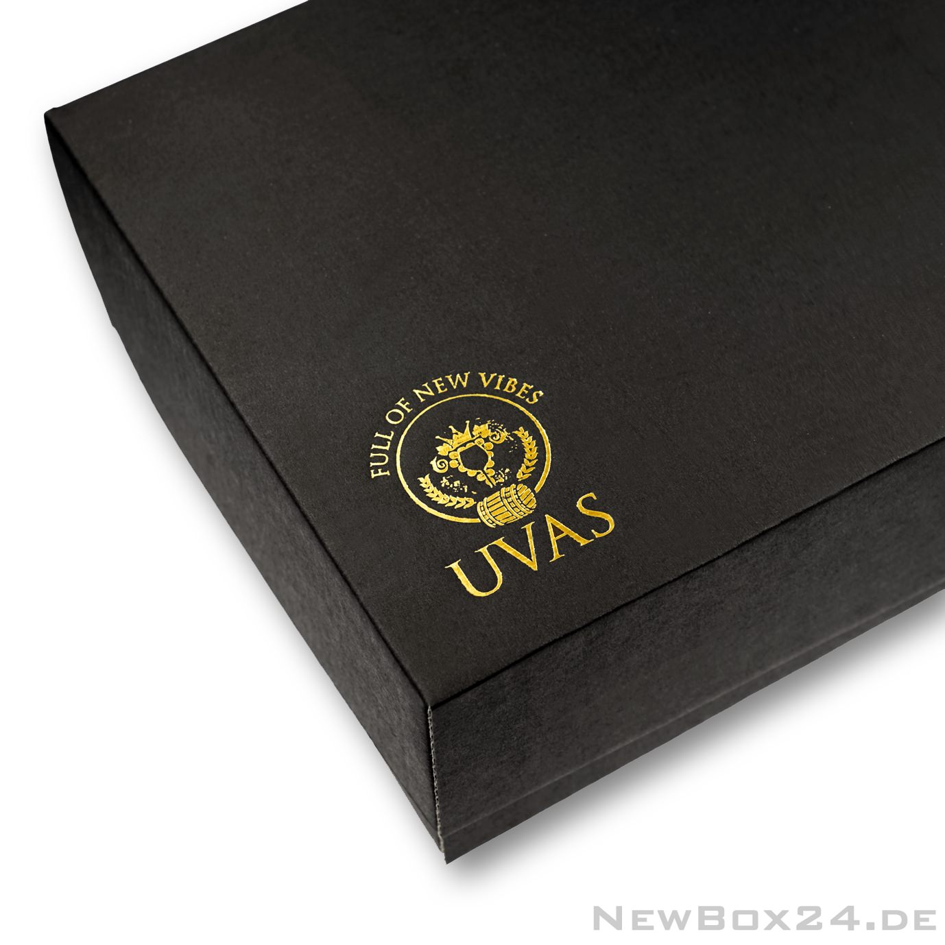 Gold-Prägung auf einer schwarzen Falt-Schiebegeschenkbox.