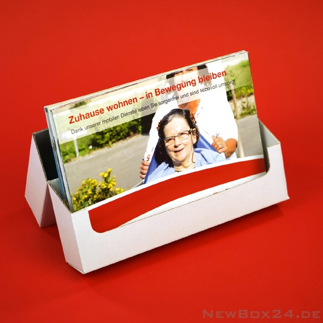 Diese Prospektständer eignen sich ausgezeichnet zum Versenden von Infomaterial an Ihre Kunden. Die Prospekte können Sie sicher im Prospektständer mitschicken.
