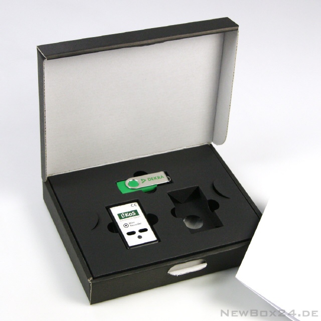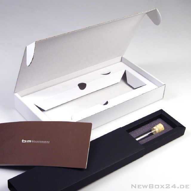 Zur besseren Fixierung eines Produktes fertigen wir auf Wunsch die passende Kartoneinlage. Auch mehere Artikel lassen sich auf diese Weise ideal in einer Geschenkverpackung - oder im Einzel-Versandkarton - platzieren.